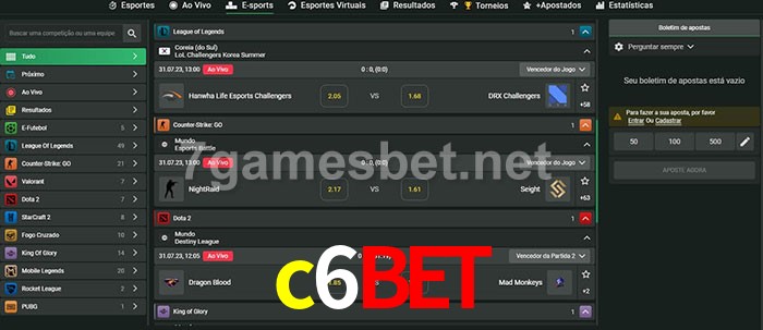 O c6bet oferece uma grande seleção de opções de apostas em e-sports com probabilidades competitivas